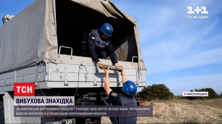 Вибухова знахідка. Понад 80 снарядів виявили на дні Чорного моря біля Кінбурнської коси. Рятувальники 10 днів обстежували акваторію півосторова. Вилучили артснаряди різного калібру, а також авіабомби. Всі - часів Другої світової. В цій акваторії рятувальники щороку знаходять боєприпаси тих часів.