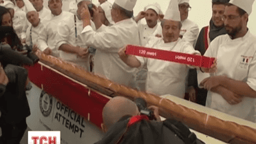 60 пекарів із Франції та Італії працювали безперервно сім годин, рухаючи конвеєр переносної печі. Хлібина вийшла завдовжки 122 метри. Гігантську булку випікали на відкритому повітрі. Попри прохолодну погоду, яка тільки ускладнила кухарам завдання, багет довели до повної готовності. А після - розрізали на декілька сотень шматків.