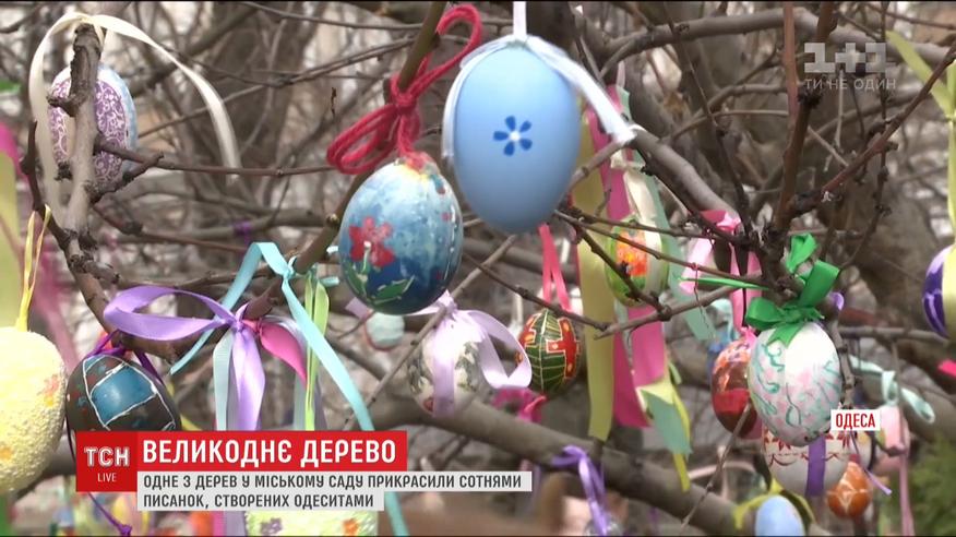 Гілки прикрасили вісьмома сотнями писанок - від мініатюрних паперових до великих дерев'яних. Створювали їх упродовж двох тижнів як професійні майстри, так і пересічні одесити. Охочі ще можуть прикрасити дерево власноруч розписаними крашанками. Цим святковим оздобленням містяни й туристи зможуть милуватися 10 днів.