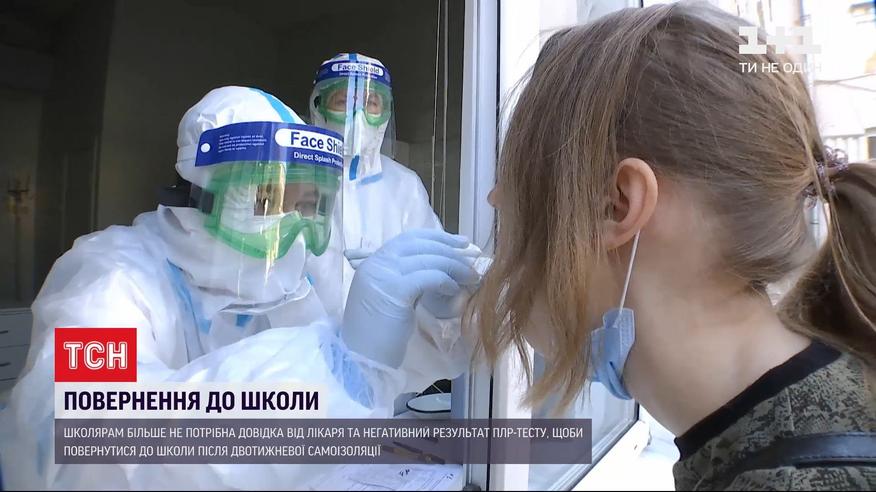 Довідка від лікаря та результат ПЛР-тесту школярам, які були на самоізоляції, більше не потрібні. Напередодні таке рішення оприлюднили в МОЗі. Раніше в школах вимагали після вимушеної ізоляції наявність негативного тесту на коронавірус. Тепер чиновники спираються на те, що якщо за 14 днів самоізоляції симптоми хвороби не проявилися, то дитина цілком здорова. За перші тижні навчання у всій країні захворіли 800 школярів, тож на самоізоляцію відправили майже тисячу вчителів та понад тисячу класів.
