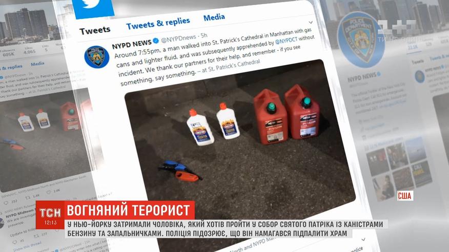 У Нью-Йорку затримали чоловіка, який хотів пройти у собор з каністрами бензину