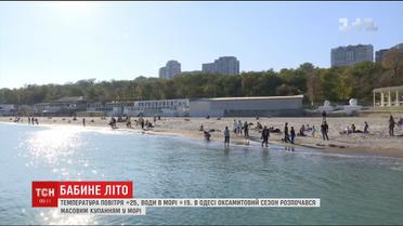 Друга половина жовтня принесла нам бабине літо, з температурою повітря у понад 20 градусів. На сонечку ніжиться вся Україна. Але найбільше пощастило тим, хто в Одесі. Вони навіть в морі плавають.