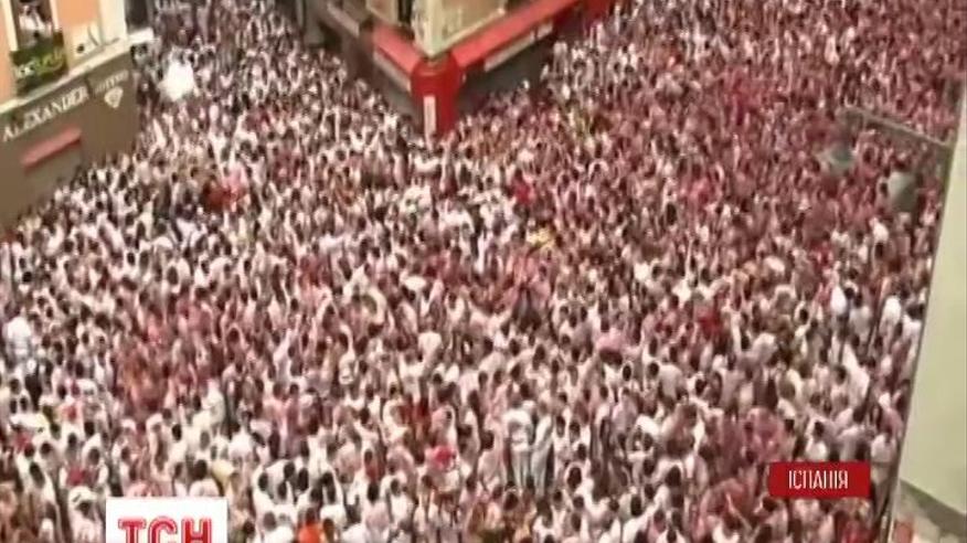 Тисячі туристів з Іспанії й усього світу заповнили центральну площу міста, поливаючи одне одного вином і усіляко підбадьорюючи одне одного. І не дивно, адже головний елемент свята - забіг вулицями наввипередки із биками.