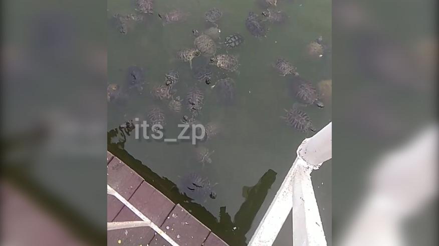 У Запоріжжі в одному із місцевих ставків оселилися черепахи. Такої кількості плазунів тут ще не бачили. Десятки черепах згуртувалися поблизу пішохідного мосту у парку "Радуга". Джерело: its_zp