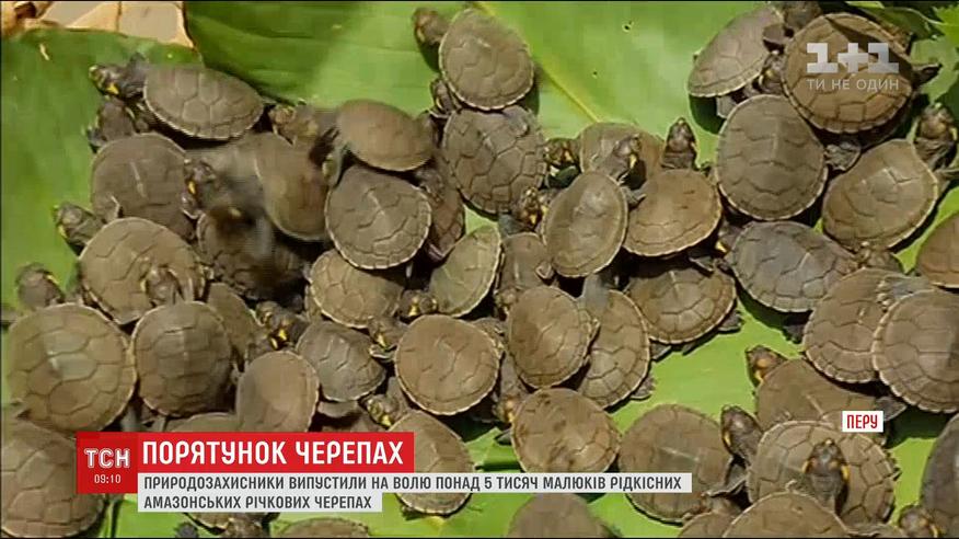 У Перу випустили на волю тисячі малюків рідкісних амазонських річкових черепах