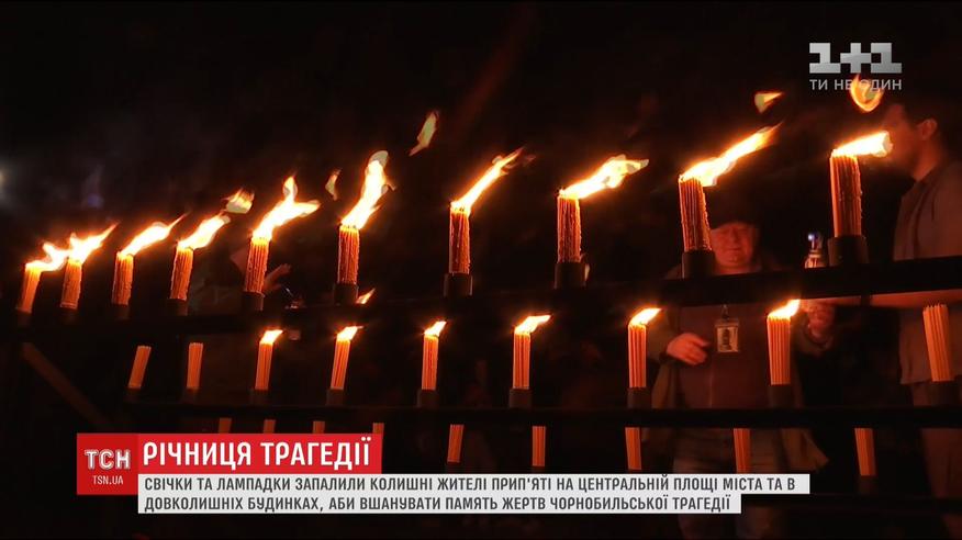 Рівно в годину і 24 хвилини - саме тоді, 32 роки тому, стався вибух на атомній станції, люди запалили 32 свічки. Пізніше понад сотню лампадок засвітили й у вікнах будівель навколо площі, зокрема у готелі, палаці культури та у кількох колишніх житлових будинках. Організатори акції кажуть, таким чином змогли на мить "оживити" місто.
