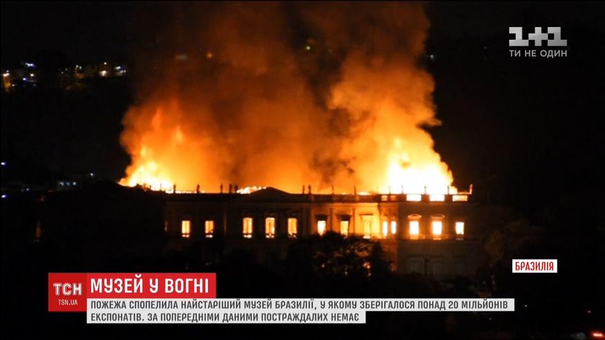 Пожежа спопелила найстаріший музей Бразилії. У будівлі зберігалися понад 20 мільйонів експонатів. Серед них цінні артефакти з різних країн, кістки динозаврів та метеорити. Що з цього вціліло, досі невідомо.