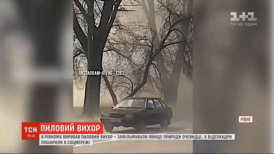 Крізь пил і сміття ледь виднілися автівки. Пилова буря вирувала в Рівному. Зафільмували все очевидиці. Синоптики кажуть - це був пиловий вихор, непритаманний для регіону. Виник він через майже безсніжну зиму, відсутність дощів та нерівномірний прогрів повітря.