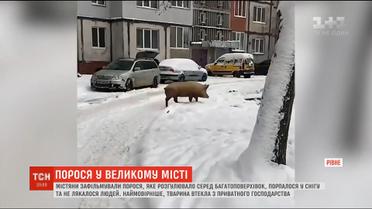 Вона щось шукала у снігу та людей зовсім не лякалася. Незвичайну прогулянку свідки зафільмували та виклали у Мережу. Користувачі прозвали тварину свинкою Пеппою. Місцеві підозрюють, що вона втекла із приватного господарства та вирішила влаштувати собі екскурсію містом.