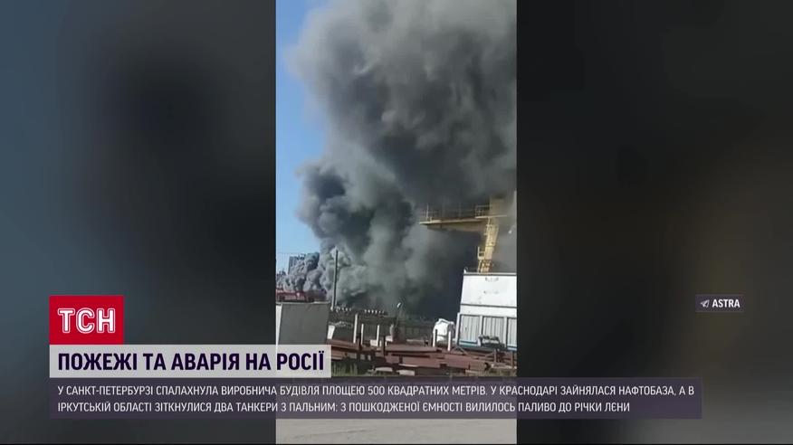 Росія у вогні - на території країни-агресорки сталося одразу кілька масштабних загорянь. У Санкт-Петербурзі спалахнула виробнича будівля у районі кільцевої дороги. На фото та відео інциденту видно величезні стовпи диму. Тим часом у Краснодарі сталося загоряння на нафтобазі - стовпи диму і вогню можна було побачити за кілька кілометрів. А от в Іркутській області росіяни влаштували чергову екологічну катастрофу - там зіткнулися два танкери з пальним. З пошкодженої ємності почався витік до річки Лени. Влада повідомляє - капітан одного з танкерів був напідпитку.