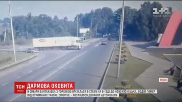 У російському Новокузнецьку вантажівка з горілкою врізалась у стелу на в'їзді в місто