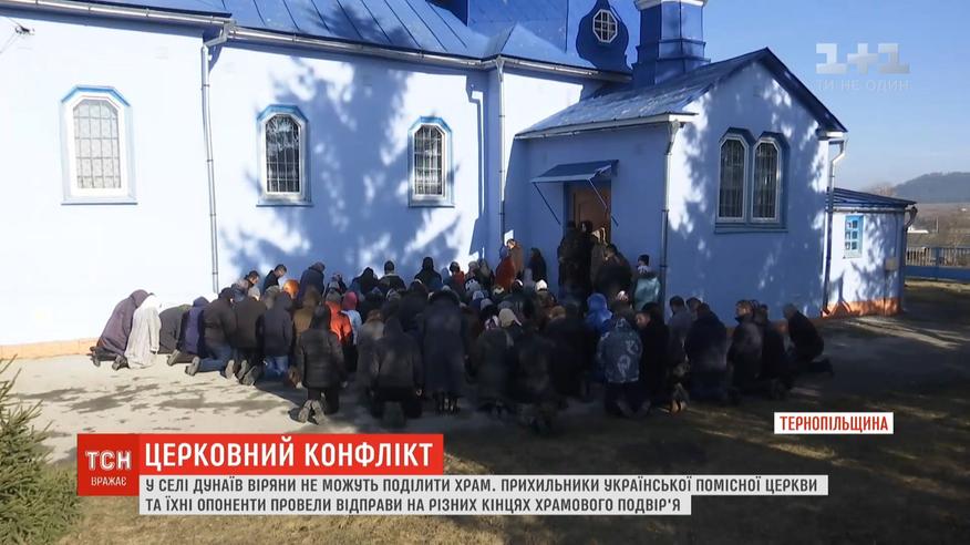 Перше богослужіння у складі Помісної Церкви України у селі Дунаїв на Тернопільщині відбулося просто неба і з кордоном поліцейських. У селі більшість вірян проголосували за те, щоб перейти в українську церкву. Однак місцевий священник не захотів відмовлятися від московського патріархату.