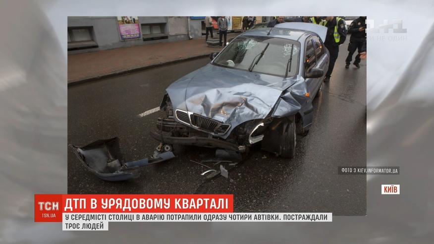 У середмісті столиці в аварію потрапили одразу чотири автівки