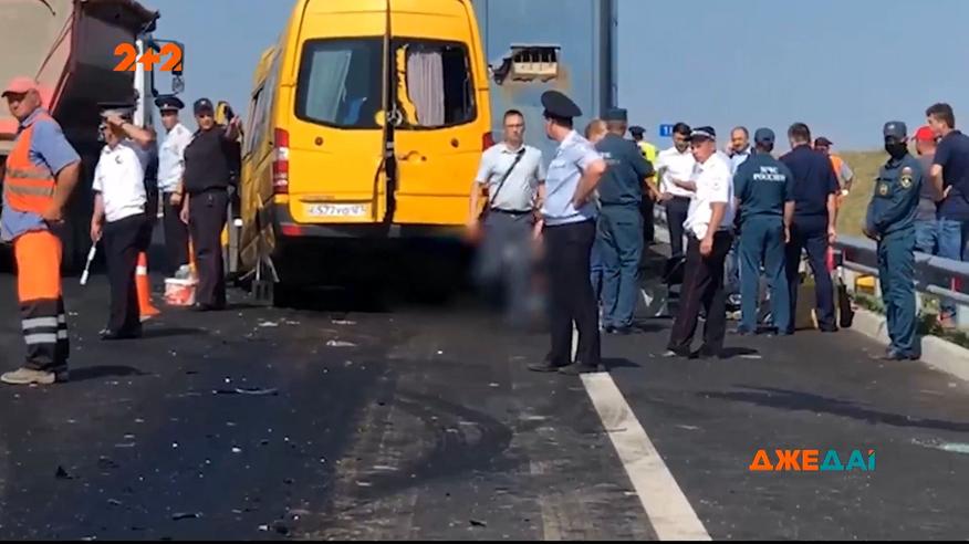 Страшна аварія неподалік Сімферополя. Мікроавтобус з п'ятнадцятьма пасажирами на повному ходу залетів під припаркований Камаз. Усі їхали з відпочинку в Керчі до Сімферополя. В аварії загинуло дев'ятеро людей, 6 – отримали поранення. Повні випуски дивіться на 1+1 video