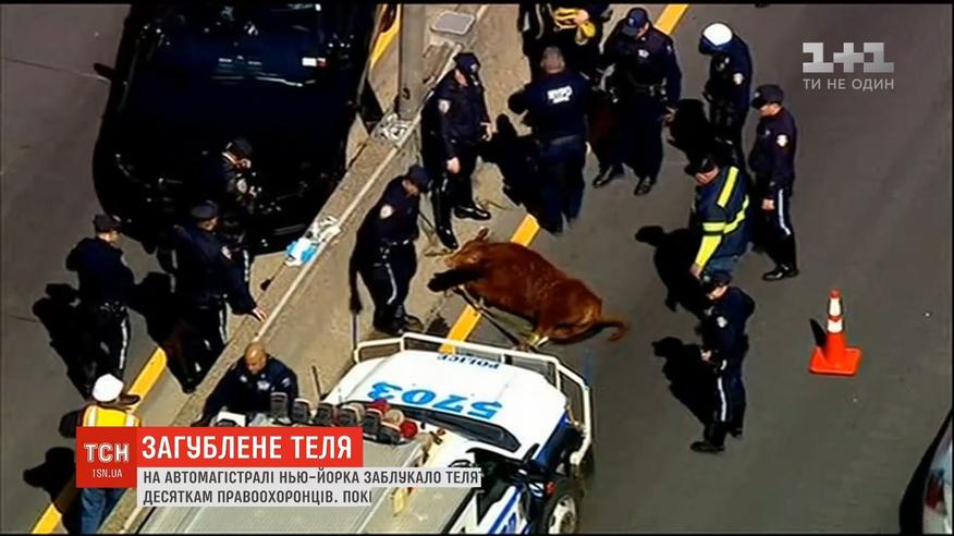 Як саме тварина забралась на автомагістраль - достеменно невідомо. Небайдужі перехожі викликали поліцію. Рятували перелякане теля десятки правоохоронців.