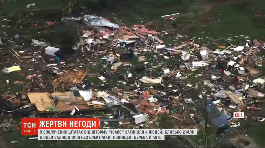 Перші жертви шторму "Ісаяс" у Сполучених Штатах. Стихія забрала життя щонайменше 4 осіб. Стихія нині вирує у Північній Кароліні, Нью-Джерсі та Вірджинії, дістався шторм вже і до Нью-Йорка. Стихія принесла із собою опади та потужний вітер. Буревій потрощив сотні будинків та автівок, повивертав із корінням дерева, пошкодив і електромережі. Без світла нині лишаються понад 2 мільйони американців. Щоб упоратися з наслідками шторму, президент США вже оголосив у Північній Кароліні надзвичайний стан.