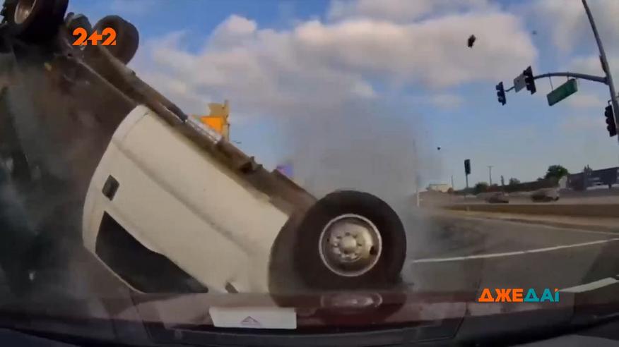 Шофер вантажівки у США спробував пограти з долею, проскочивши перехрестя на червоне, але програв. На повному ходу він влетів у позашляховик. Призвідник аварії наразі у лікарні. Пасажирів з іншого авто врятували подушки безпеки та пристебнуті паски. Повні випуски дивіться на 1+1 video