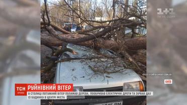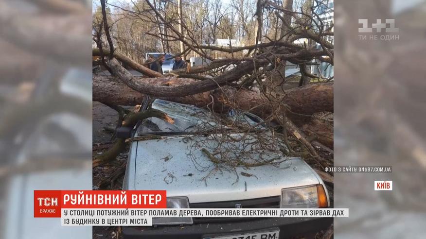 У Києві пориви вітру сягають 30 метрів за секунду. Він валить дерева, зносить дахи та ламає білборди навпіл. Синоптики оголосили помаранчевий рівень небезпеки. В центрі столиці сухе дерево впало на перехожого, а вітром знесло дах на припарковані авто.