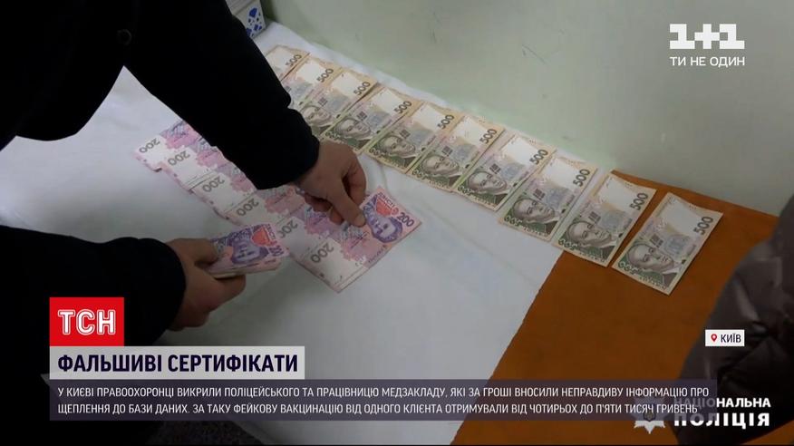У Києві правоохоронці викрили свого ж колегу та працівницю медзакладу. Вони, як вважає слідство, змовились і за гроші вносили неправдиву інформацію про щеплення до бази даних. За таку фейкову вакцинацію від одного клієнта отримували від 4 до 5 тисяч гривень. На роботі та у помешканнях підозрюваних виявили гроші і список охочих до підробки. Таких було понад 200.