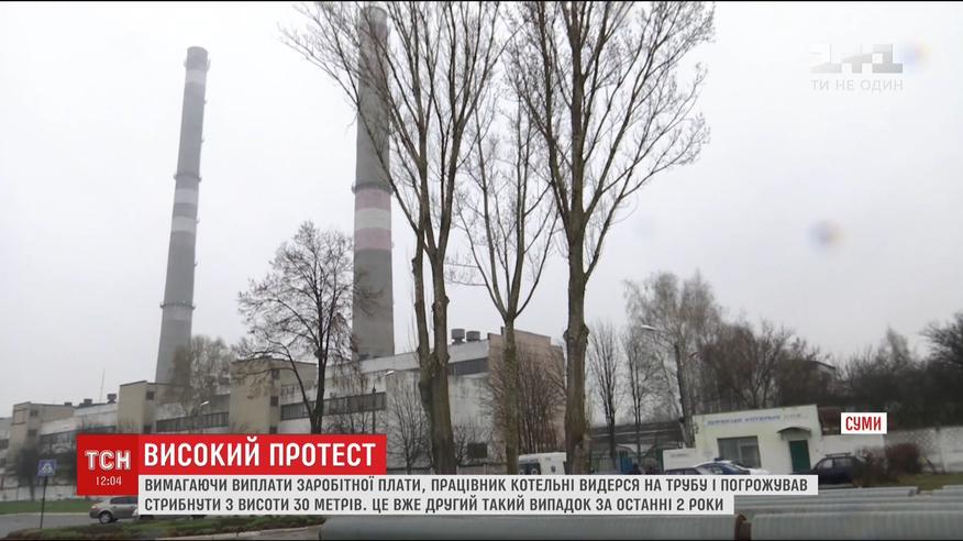У Сумах працівник котельні видерся на трубу й погрожував зістрибнути