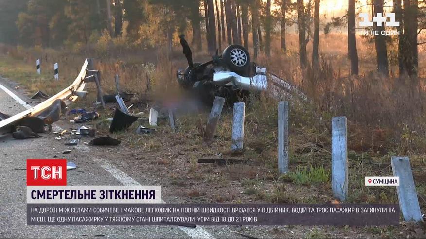 У Сумській області легковик на повній швидкості врізався у відбійник - четверо людей загинули