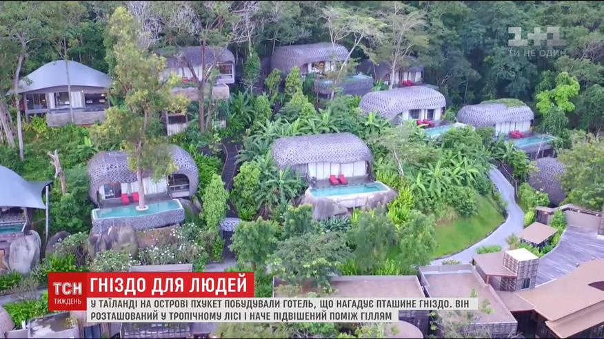 "Пташине гніздо" на острові Пхукет розташоване у тропічному тайському лісі, наче підвішене поміж гілок, із вікон видно дерева і море. Всередині просторі кімнати з панорамними вікнами, тропічний душ та басейн просто неба.