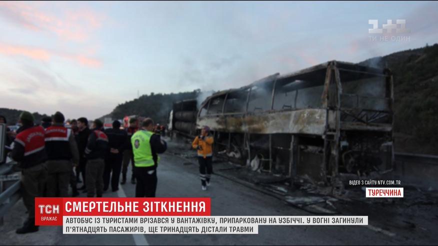 На півночі країни туристичний автобус врізався у припарковану вантажівку. Щонайменше 13 пасажирів загинули. Ще 15 осіб отримали травми. Внаслідок зіткнення автобус сплахнув. Рейс прямував із Стамбула в Токат.