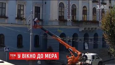 У вікно кабінету мера Чернівців заліз чоловік з автовишки