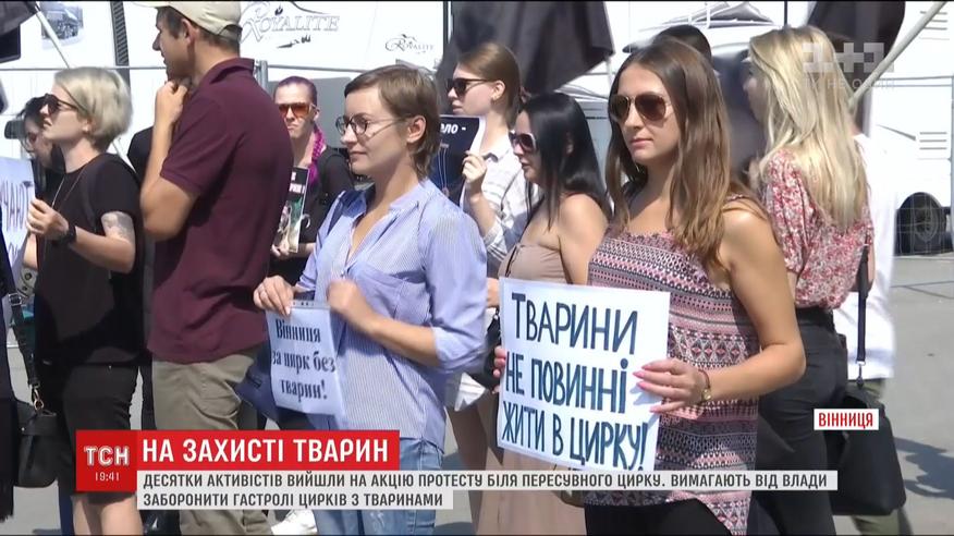 Акцію протесту біля пересувного шапіто влаштували активісти у Вінниці. Аби привернути увагу містян до жорстокого поводження з тваринами, на мітинг вийшли цілими родинами. Активісти стверджують: тварини у цирках сидять в тісних клітках, їх безжально б'ють під час дресирування. Біля пересувного цирку мітингувальники розгорнули плакати і намагались переконати відвідувачів не купувати квитки.