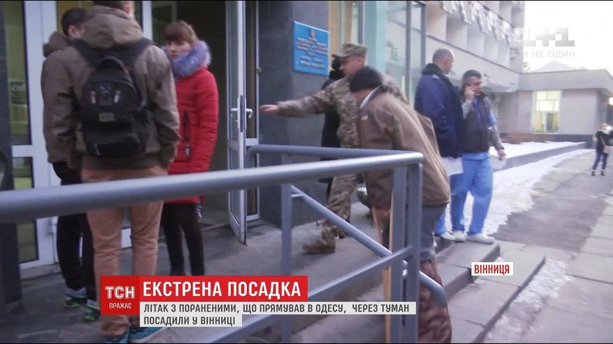 Поранених на ньому перевозили зі шпиталю Дніпра в Одесу. Але одеське летовище через сильний туман прийняти борт не змогло. Тож його скерували у Вінницю. На облавку - 12 поранених. Здебільшого з мінно-вибуховими травмами середньої тяжкості. За останній тиждень до Вінницького військового шпиталю доправили вже 28 бійців. Усі зі Світлодарської дуги.