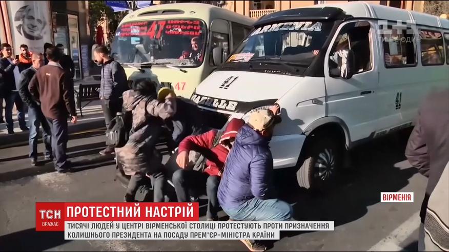 Тисячі людей протестують у Єревані через призначення колишнього президента Саргсяна прем'єром. Демонстранти разом з опозиційними депутатами спробували прорватися до будівлі парламенту, який вже завтра голосуватиме за кандидатуру прем'єр-міністра. Однак, поліцейські не пропускали протестувальників, дійшло до сутичок.
