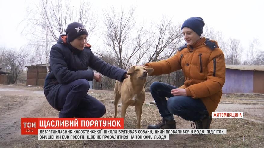 У соцмережу потрапило відео як підліток, ризикуючи життям, витягає пса, який провалився під лід. Хлопець спочатку намагався дістати тварину палицею, а потім підповз до краю криги і схопив руками. Відео зняли випадкові перехожі, які побачили це з мосту. Проте імені рятівника ніхто не знав. А ТСН розшукала і його, і чотирилапого щасливчика.