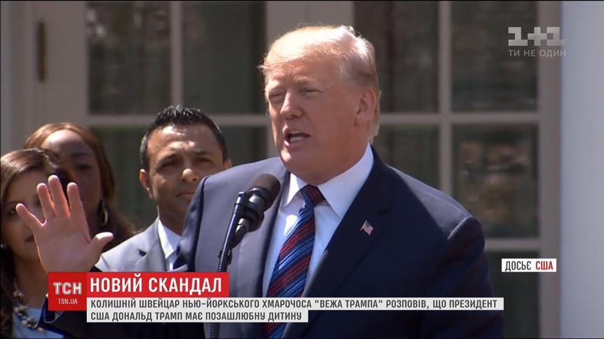 Колишній швейцар нью-йоркського хмарочоса "Вежа Трампа" розповів, що президент має ще одну дитину. Начебто, його народила колишня домогосподарка Трампа. Скандальну новину американський таблоїд викупив у швейцара за 30 тисяч доларів. Ексклюзивну статтю так і не надрукували, однак про домовленості між швейцаром та виданням дізналися інші журналісти.