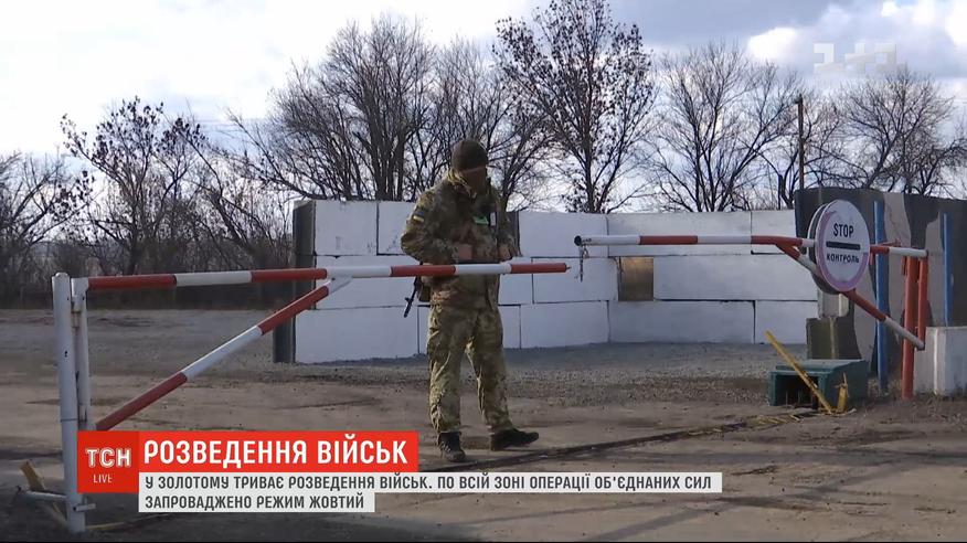 По всій зоні ООС запроваджений "жовтий" режим. Це означає, що військові можуть перевіряти документи у цивільних, вилучати речі. Також обмежувати або забороняти рух машин та пішоходів. Пресу до зони відведення поки не пускають.