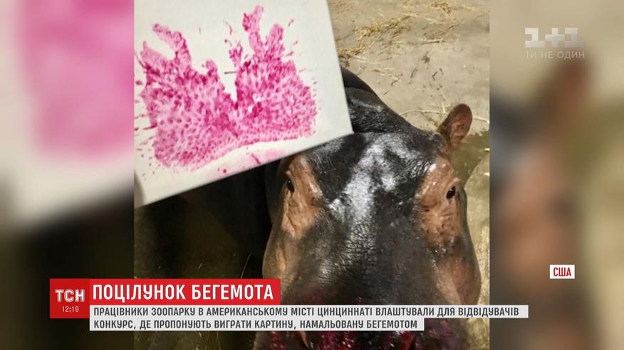 Працівники звіринця та місцева знаменитість бегемотиха Фіона створили унікальну картину. Тварина лишила на полотні відбитки губ - цей малюнок назвали "Поцілунком". У зоопарку пропонують виграти картину, яка може стати подарунком на День святого Валентина. Для цього охочі можуть взяти участь у волонтерській програмі і пожертвувати 35 доларів на харчі та іграшки для мешканців звіринця.