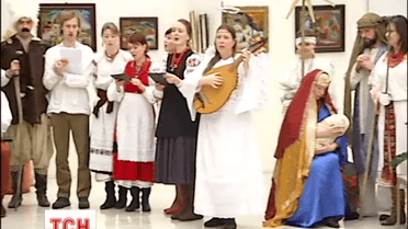 Учасники старокиївського вертепу колядують для поранених на Сході
