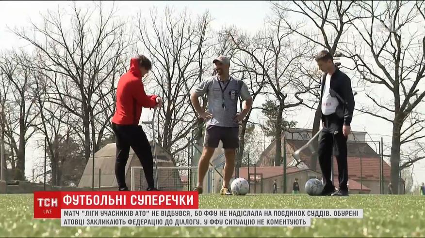 Причина - Федерація футболу України не прислала на поєдинок суддів. Гравців такий учинок обурив. "Ліга учасників АТО", мовляв, існує ще з 2015 року, а з цього року її матчі внесені до календарного плану Міністерства молоді та спорту. Та попри договір із ФФУ, його умови не завжди виконуються.