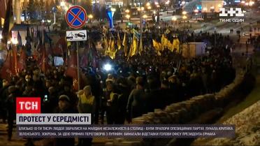 Близько 10 тисяч людей зібралися на Майдані Незалежності надвечір. Були прапори опозиційних партій, лунала критика президента Володимира Зеленського. Зокрема, за ідею прямих переговорів з Путіним заради миру на Донбасі. Серед вимог мітингувальників - відставка голови Офісу президента Єрмака.