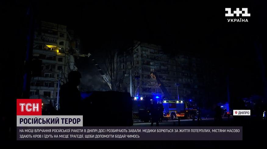 На місці влучання російської ракети в Дніпрі станом на вечір 16 січня досі працюють надзвичайники. Рятувальна операція триває під завалами ще можуть бути люди. Чи вдалося впродовж дня когось витягти, яка остання інформація на цю хвилину - знає кореспондентка ТСН Анастасія Невірна.