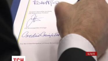 Підписи під документом поставили керівники 28 країн Європейського союзу й від України прем'єр-міністр Арсеній Яценюк.