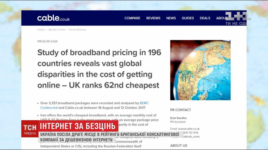 Україна посіла друге місце в рейтингу за дешевизною Інтернету
