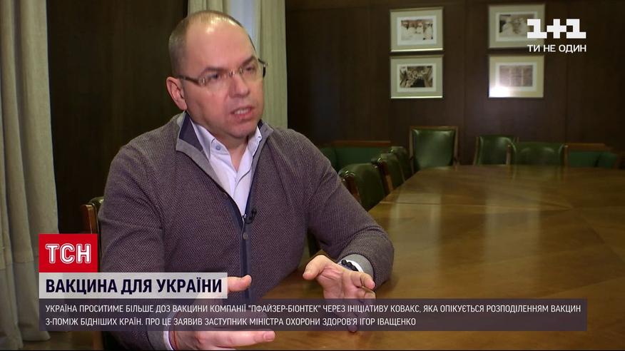 Україна проситиме більше доз вакцини компанії "Пфайзер-Біонтек" через ініціативу "Ковакс", яка опікується розподіленням вакцин з-поміж бідніших країн. Про це заявив заступник міністра охорони здоров'я Ігор Іващенко. Саме вакцини "Пфайзер" надійдуть до України першими - 117 тисяч доз. Також через "Ковакс" ми отримаємо вакцини британсько-шведського концерну "АстроЗенека". Обидва препарати мають високу ефективність, доведену дослідженнями. Нині ними активно вакцинуються у світі.