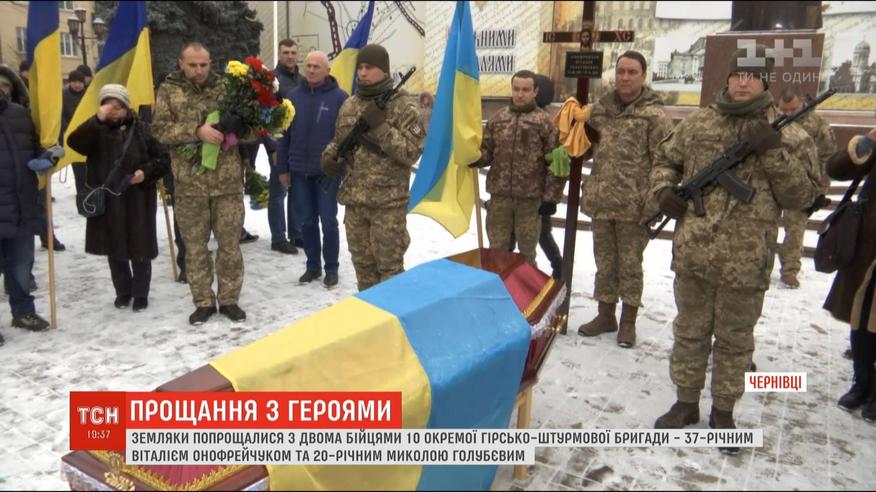 Із 37-річним сержантом Віталієм Онофрейчуком попрощалися у Чернівцях. Він загинув ще 17 листопада під час обстрілу селища Новотошківське. У Волочиську на Хмельниччині земляки навколішки провели в останню путь 20-річного Миколу Голубєва. Військовий загинув у перший день нового року під час мінометного обстрілу на Донеччині.
