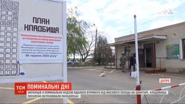Дослухались до закликів влади та церкви і цвинтарі не штурмували. Цими вихідними - тиждень після Великодня - українців таки вдалося стримати від масових походів на кладовища, аби пом'янути померлих близьких. Усюди цвинтарі посилено патрулювали поліцейські.