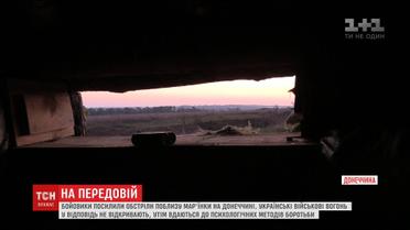 Ворог понищив стіни будинків житлових кварталів Мар'їнки, але минулося без жертв. В умовах, коли стріляють тільки бойовики, наші хлопці вигадують психологічні методи боротьби. Зокрема, на одній з позицій щоночі опівночі вмикають Гімн України.