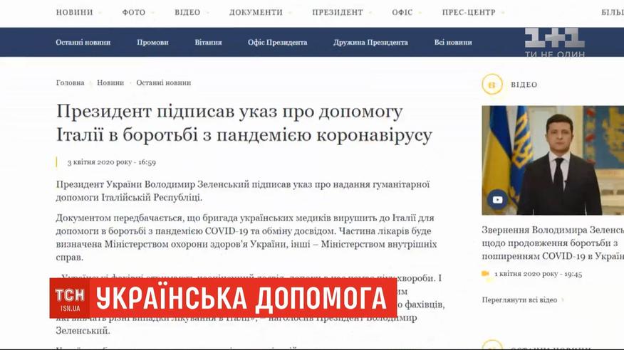 Україна надасть гуманітарну допомогу Італії. Президент Зеленський підписав відповідний указ. Для допомоги в боротьбі з коронавірусом та обміну досвідом, до Італії вирушить бригада українських медиків. Захист та зарплату їм забезпечить батьківщина, а от проживання та харчування - Італія. Більше про коронавірус в Україні