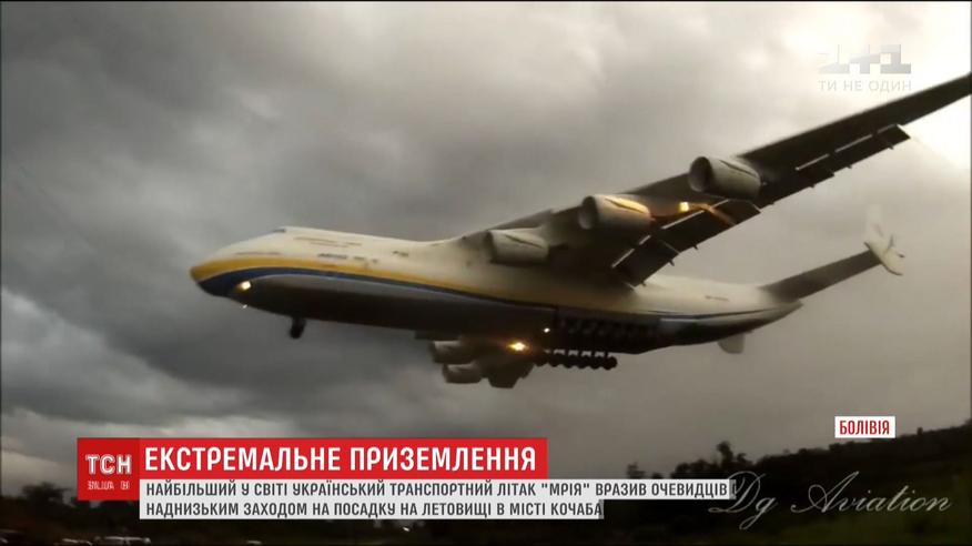 Найбільший у світі транспортний літак під час приземлення пройшов настільки низько над землею, що після цього довкола аеропорту хиталися електродроти й дерева. Навички екстремального приземлення наші пілоти продемонстрували на летовищі міста Кочабамба. Свідкам цієї посадки здалося, що крилатий велетень пронісся під дротами лінії електромереж.