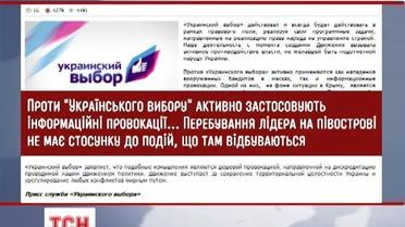 Прес-служба: «Проти "Українського вибору" активно застосовують інформаційні провокації. Перебування лідера на півострові не має стосунку до подій, що там відбуваються».