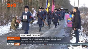 43 українських військових загинули за рік від куль ворожих снайперів. Про це заявив міністр оборони України. Донбас став полігоном для російських військ і, зокрема, для підготовки снайперів. Те, що за нашими оборонцями полюють професійні стрільці з РФ, свідчить і відео, на якому засвітились окупанти з новітньою зброєю та системами спостереження, потрощені камери на спостережних постах і вбиті наші воїни. Сьогодні у Луганській області попрощалися з військовим розвідником Станіславом Запорожцем, який загинув біля Павлополя від кулі того самого ворожого снайпера. Детальніше дивіться у сюжеті. Повні випуски дивіться на 1+1 video