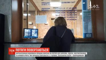 Із сьогоднішнього дня "Українська залізниця" почала продаж квитків на перші після карантину потяги. Рух відновлюватимуть, починаючи із 1 червня. Це буде все ще не повноцінний графік: на маршрути вийдуть лише п'ять міжміських поїздів. Два зі столиці до Харкова, по одному до Одеси, Костянтинівки та Кривого Рогу.